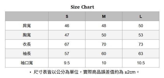 Wearing Size / 穿著尺寸 :M